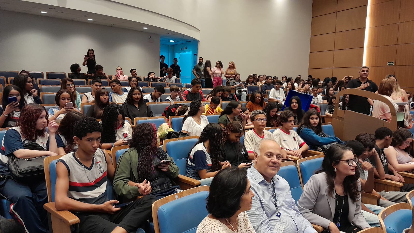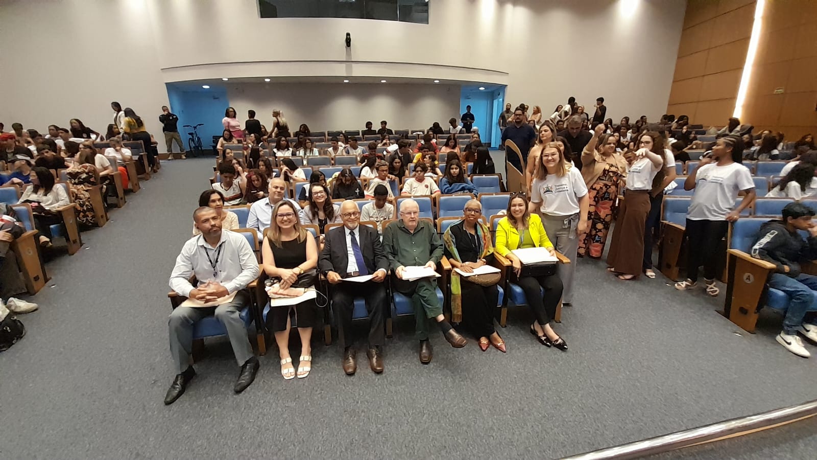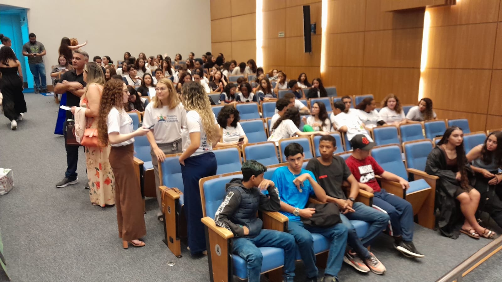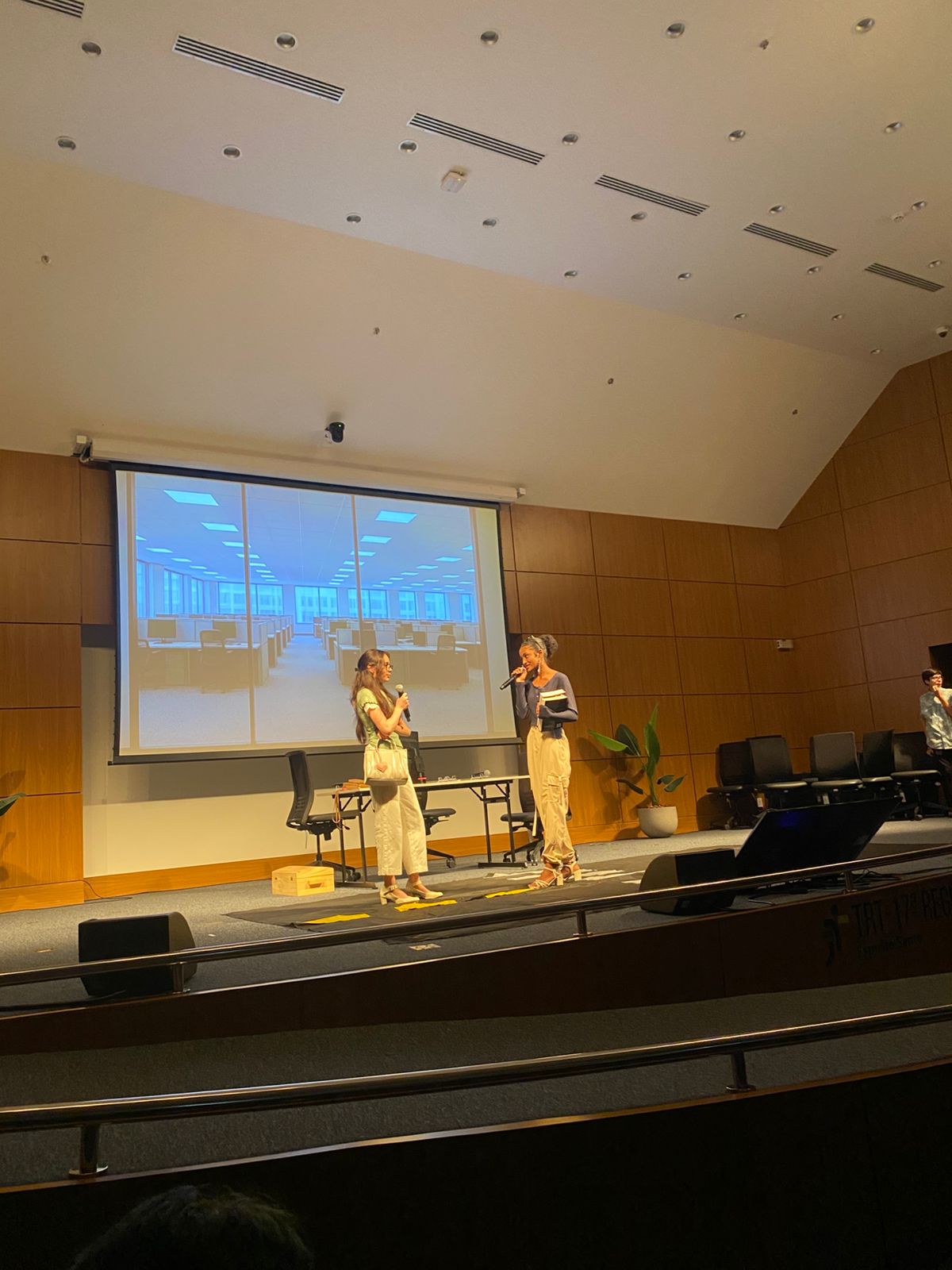 O Auditório do Tribunal Regional do Trabalho da 17ª Região ficou lotado, no dia 30 de setembro, para a cerimônia de encerramento do Programa Trabalho, Justiça e Cidadania (TJC) 2025, realizada pela AMATRA 17 em parceria com o TRT-17. O evento foi marcado pela alegria, pela criatividade e pela emoção dos estudantes, que levaram ao palco espetáculos de teatro, música, dança, áudios e vídeos sobre temas fundamentais como racismo, bullying, igualdade de gênero, dignidade da pessoa humana e a trajetória dos direitos trabalhistas no Brasil.