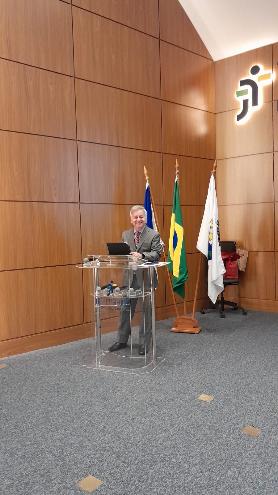 Em sua fala, o Desembargador Marcelo Mancilha ressaltou a importância de todos os voluntários que fazem o programa acontecer, com destaque para os jovens acadêmicos da FDV. Em tom emocionado, lembrou que chegou a dar aulas na instituição “quando ainda tinha cabelo”, recordação testemunhada pela profª Gilsilene, atual coordenadora do TJC na FDV. Mancilha também destacou que o auditório do TRT-17 foi inaugurado justamente com uma culminância do programa, à época coordenado com brilhantismo por Maria Francisca Lacerda. Dirigindo-se aos estudantes, incentivou-os a perseguirem seus sonhos: “se eu, que quando criança só queria ser jogador, estudei e hoje sou desembargador, todos vocês também podem acreditar e lutar pelos seus objetivos”.