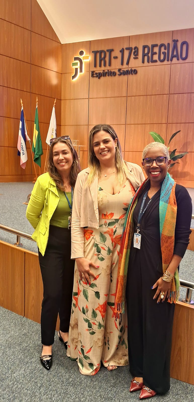 A representante da ArcelorMittal, Carla, enfatizou o orgulho da empresa em patrocinar o TJC, programa que considera vibrante e de grande alcance social. Na foto a seguir, Carla Brunoro e Viviane Trindade, representantes da empresa ArcelorMittal, patrocinadora do Programa TJC; , Hélio Mario, desembargador aposentado e coordenador do TJC; Marcelo Mancilha, desembargador que representou o TRT17 e Anna Beatriz Castinhos, juíza do trabalho e presidente da AMATRA17 assistem aos belos trabalhos dos estudantes das escolas participantes.
